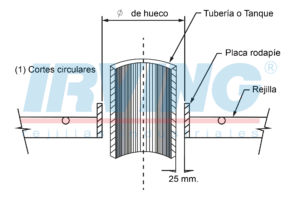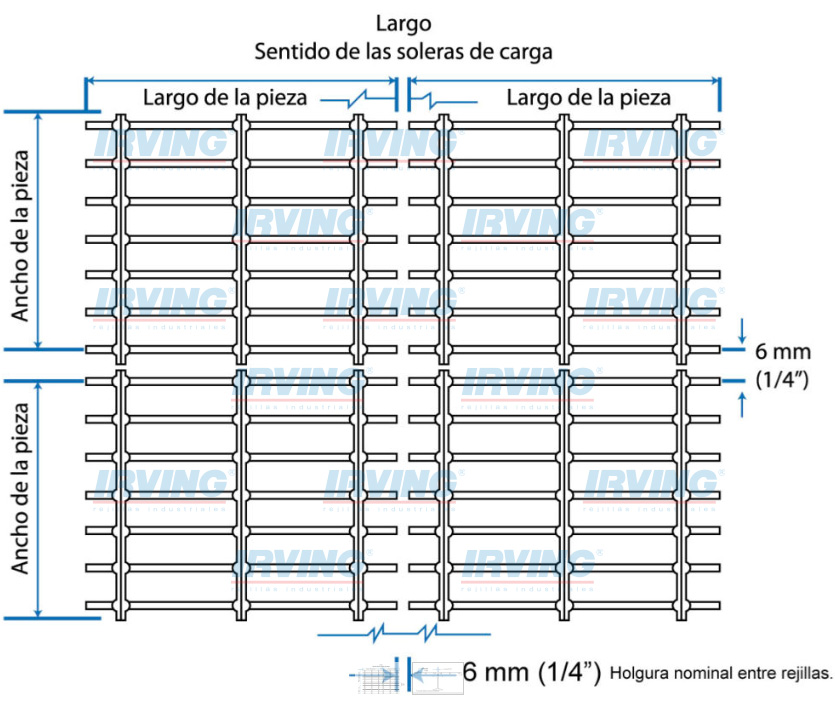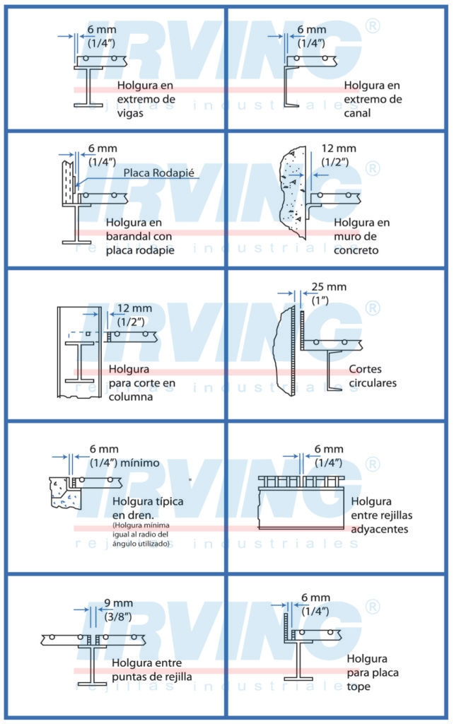 Debido a las propiedades del acero y aluminio se debe considerar un espacio de tolerancia para la instalación adecuada de una rejilla industrial IRVING®.