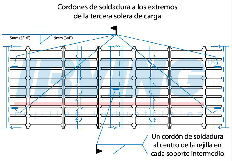 También es posible soldar la rejilla directamente a la estructura, colocando puntos de soldadura en los extremos de la tercer solera de carga y al centro.