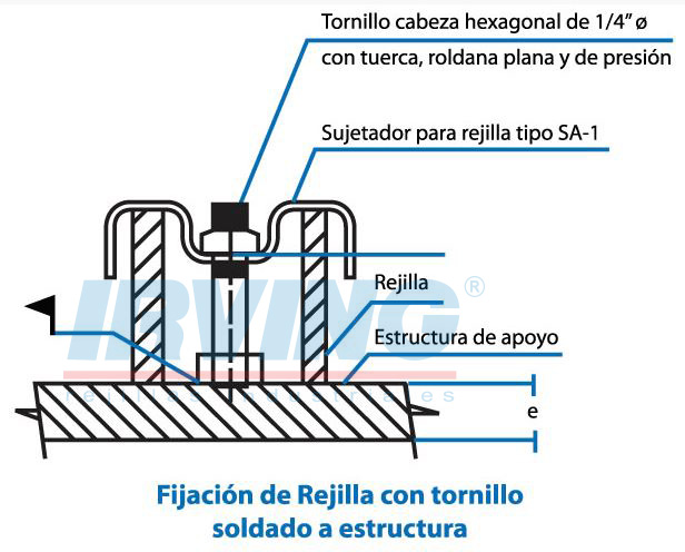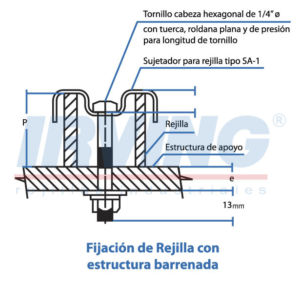 Se coloca barrenando la estructura, la longitud del tornillo será la medida comercial siguiente que resulte de sumar el tamaño de la solera en la rejilla más el espesor de la estructura.