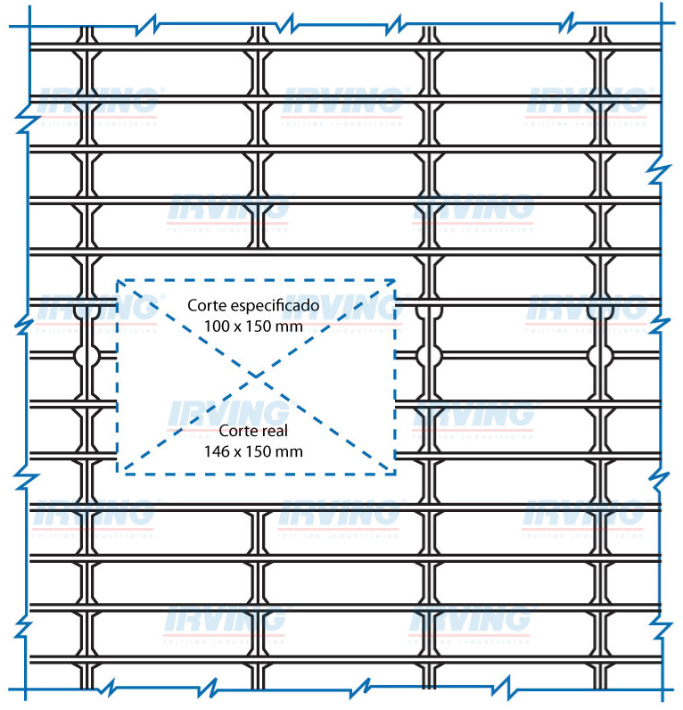 Suministramos rejilla IRVING® cortada a la medida. Para la instalación correcta de la rejilla cortada a la medida nuestro departamento de ingeniería proporciona a los clientes un plano con la ubicación y medidas de todas las rejillas que se usarán en el área a cubrir, así también las rejillas de manera individual cuentan con un identificador que facilita el seguimiento del plano en la obra, reduciendo el tiempo y el costo de la instalación.